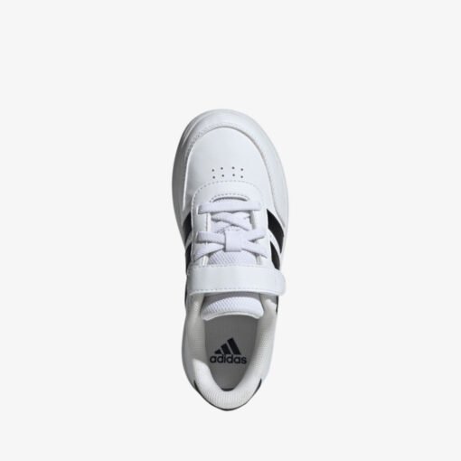 Teniseri imaju omiljenu podlogu za igru, vi možete da birate teren kada obujete ove patike. Napravljene su od sintetičke kože koja povećava izdržljivost. Jastučasti međuđon doprinosi udobnosti bilo da idete u školu, na trening ili šetnju. Patike su plitkog profila sa elastičnim pertlama i čičak trakom, što značajno olakšava obuvanje i izuvanje. Perforacije na prstima povećavaju prozračnost. Napravljen od serije recikliranih materijala i najmanje 50% recikliranog sadržaja, ovaj proizvod predstavlja samo jedno od adidas rješenja za pomoć u okončanju plastičnog otpada.