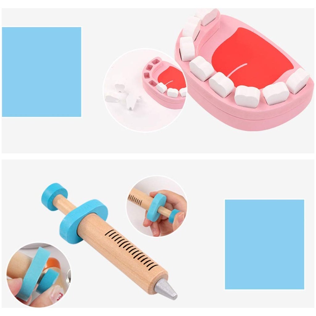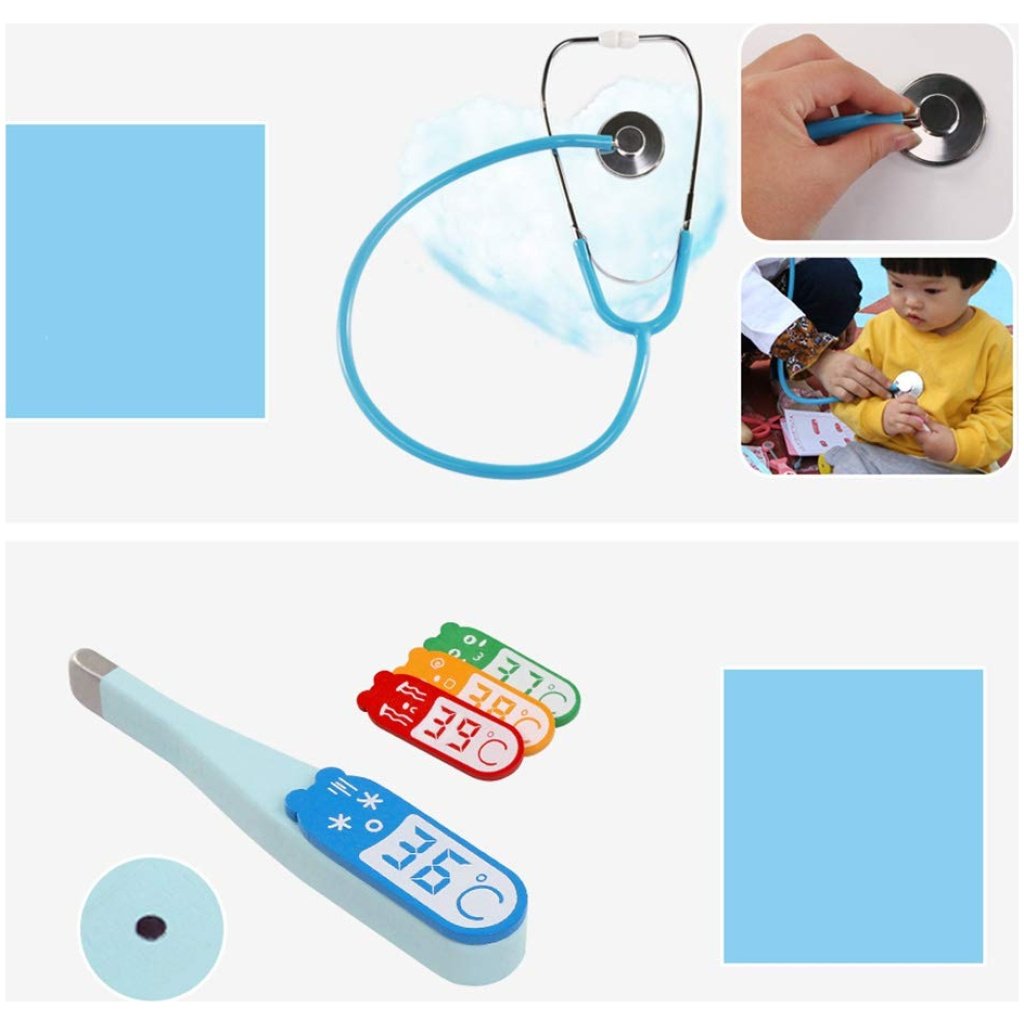 Set uključuje medicinske uređaje koje liječnici obično koriste, a svaki predmet je posebno prilagođen za male ruke. Pomaže djeci da znaju i razumiju svoje uloge dok se bave igrom uloga liječnika / pacijenta.