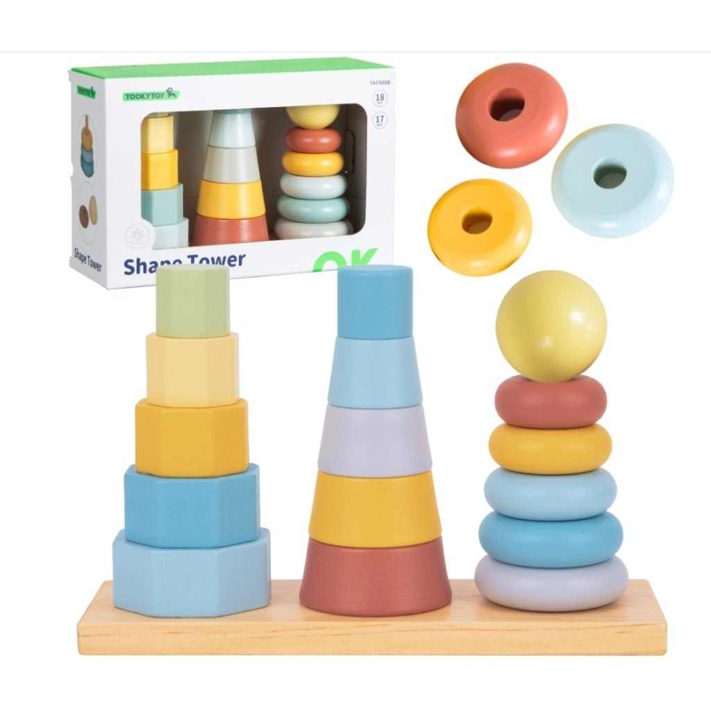 Set od tri različita tornja sa tri različita nivoa težine rješavanja ovih izazova. U zavisnosti od oblika, boje i veličine potrebno je sagraditi kulu, a dok pri tom razvijaju fini motoričke sposobnosti i nalaze načine rješavanja problema.28x9x20cm